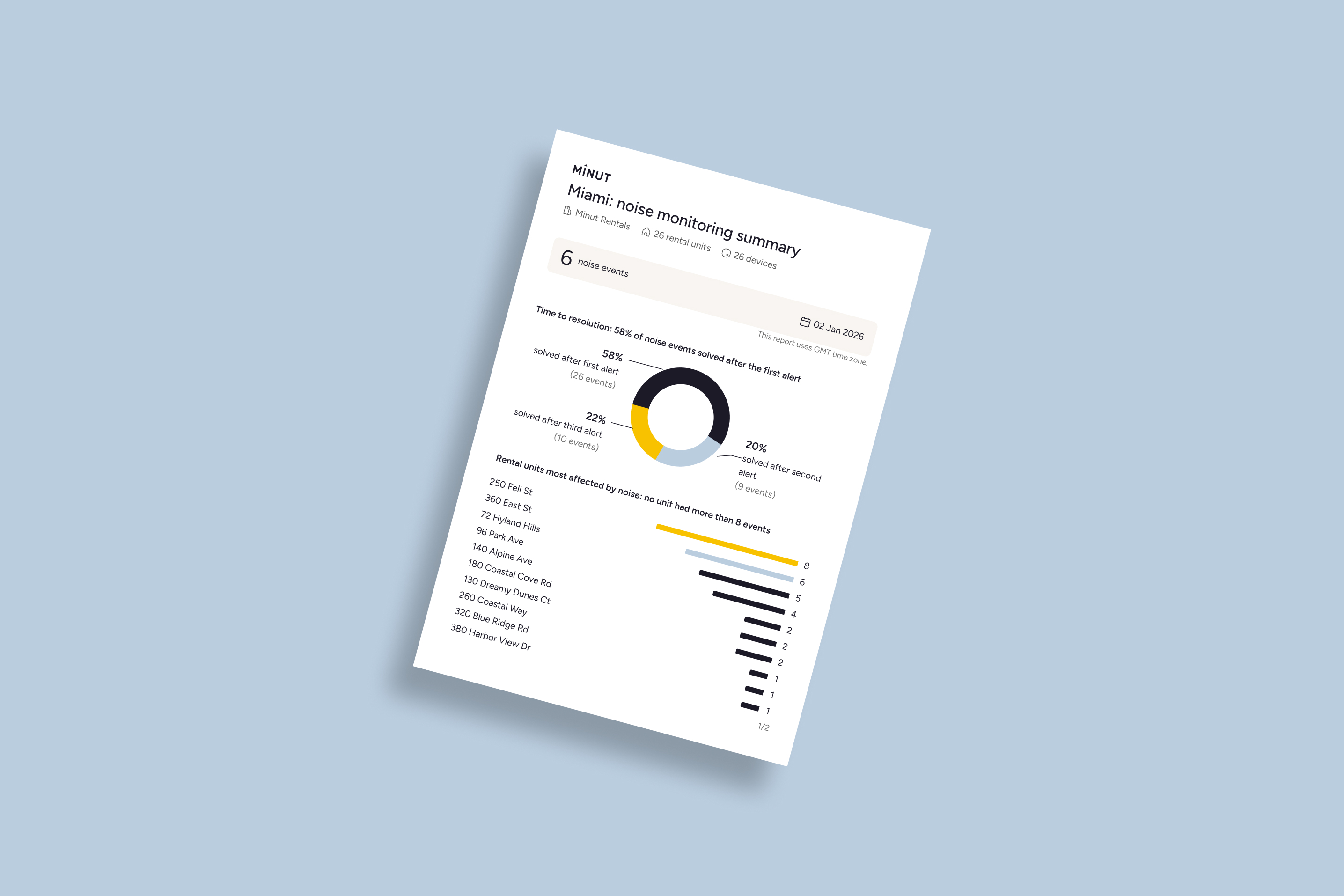 From July 2026, Brisbane’s Short Stay Accommodation Law will hold operators accountable for guest behavior and requires a response to every noise complaint within 60 minutes. Minut alerts you before the complaint is even made, across every property in your portfolio.